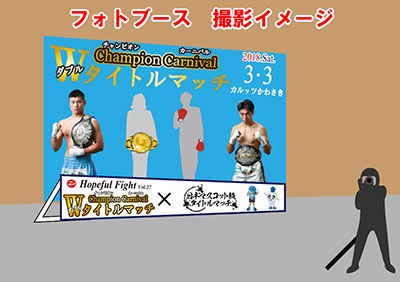 川崎フロンターレと川崎新田ボクシングジムがコラボしたフォトブースが会場内に登場!チャンピオンカーニバルに来た記念にファイティングポーズで写真を撮ろう!撮影した写真は「#チャンピオンカーニバル」を付けてSNSに投稿してね!フォトブースにはあのマスコットたちも遊びに来るかも!?