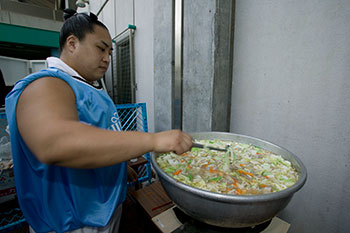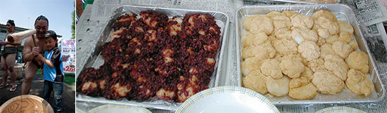 | 企画⑫ | 力士がつく「力餅」販売 力士が一生懸命ついたお餅を販売。「あんこ味」と「きなこ味」の2種類を用意しました。力餅を食べて、君も力士みたいに力持ちになろう!!