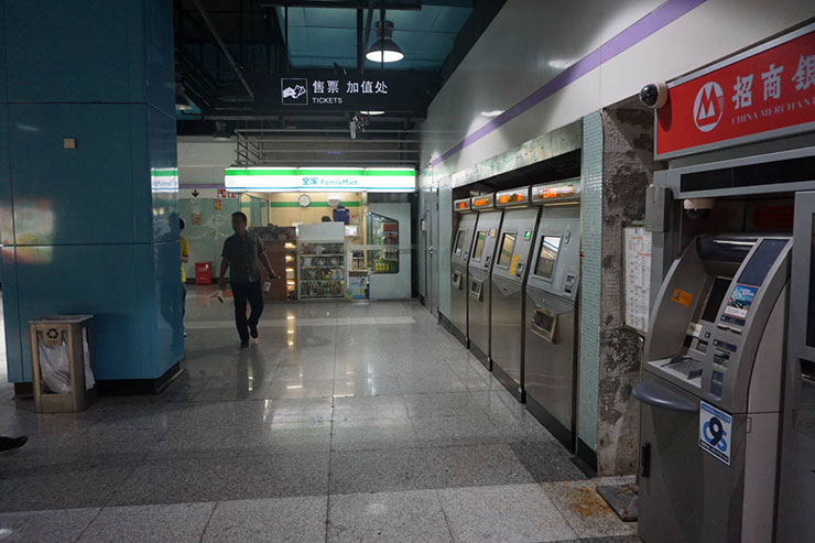 券売機で切符を購入。「広蘭路(Guanglan Road)」にて2号線を乗り継ぎ、「江蘇路(Jiangsu Road)」にて11号線に乗り換え