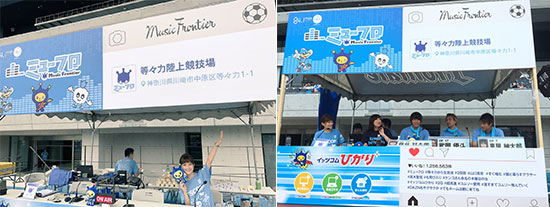 | 実施内容 | イッツコムが運営するラジオ局「FMサルース(84.1MHz)」で放送中の川崎フロンターレ応援番組「Music Frontier」(毎週水曜17時〜)。普段は、たまプラーザのスタジオからの生放送ですが、この日は、等々力に特設ブースを設けて、公開生放送を実施します!MC山口真奈が、試合直前の等々力を盛り上げます。