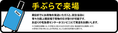 【宅急便引き取り時間】10:00〜14:00(試合開始まで) |