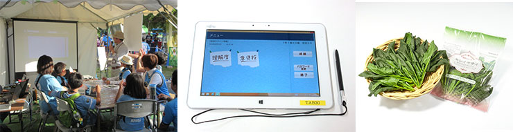 | 内容 | 一人1台のタブレットPCを使って、地球問題改善のために、日頃の生活でできる ことだけではなく、サッカーチームのサポーターとして、どのような環境活動が できるか考えてもらいます。 参加された皆様へ、エグミが少なく洗わずに食べられる富士通の低カリウム ホウレンソウをプレゼントします。 ※雨天、荒天により電子機器に影響のある場合は中止する場合があります。 |