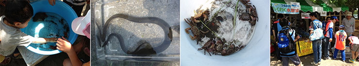 | 内容 | 地域を流れる川には、いろいろな面から子どもたちの学びの素材がつまっています。 川の自然、生きものや水とのつながり、治水の歴史の観点からみても、子どもたちにぜひ関心をよせてもらい、楽しみながら、人と自然のつながりの大切さを学びます。 矢上川で見られる生きものの水族館展示や写真を展示、説明します。クロベンケイガニのタッチ水槽で実物に触ったり、説明します。 ※矢上川…川崎市の西南部を流れる一級河川、鶴見川水系の支流。 |
