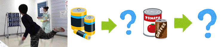 | 内容 | 資源物が何に生まれ変わるのか、ストラックアウトゲームで楽しく学べます。正しい的を倒して、プレゼントをもらおう! |