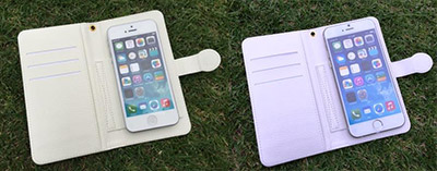 (左:iPhone5、iPhone5Sの大きさイメージ、右:iPhone6の大きさイメージ) |