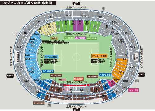 味の素スタジアムの車椅子席は、メインスタンド下層(52席)に設置しております。