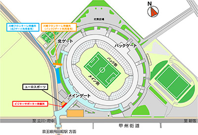・京王線「飛田給」駅北口より徒歩5分(スタジアム手前歩道橋を上がって、ペデストリアンデッキより入場)