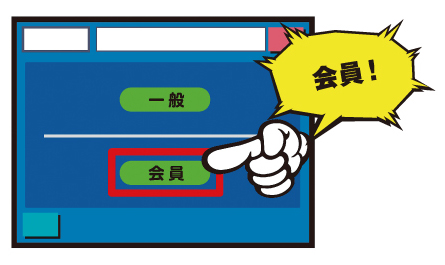 5.「一般」 か 「会員」 かを選ぶ画面では、必ず 「会員」 をタッチし引換券番号(券面記載)を入力。