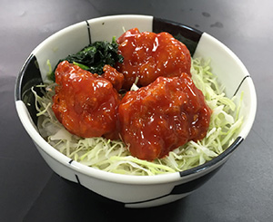 | かしわや | 真っ血(まっか)なヤンニョムチキン丼 500円(税込)