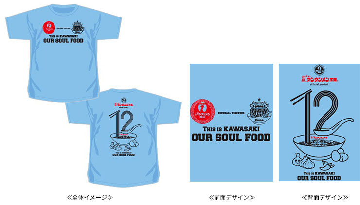 創業55年、川崎市に1号店がオープンして以来、川崎市民を虜にしてきた川崎市民のソウルフード「元祖ニュータンタンメン本舗」。ホームゲーム時の等々力陸上競技場での販売も今年で3年目を迎え、更なる展開を模索した結果、今回のコラボTシャツの発売に至りました。今回のコラボを機会に、更なる展開にもご期待ください…。