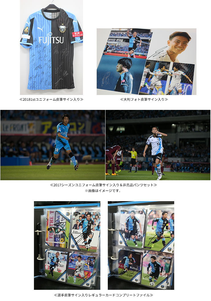 | 賞品一覧 | ◇選手直筆サイン入り2018年ユニフォーム各種(1st/2nd/GK) ◇選手直筆サイン入り2017年ユニフォーム&非売品!パンツセット(1st/2nd/GK/ACL) ◇選手直筆サイン入りレギュラーカードコンプリートファイル ◇選手直筆サイン入り(刻印入り)大判フォト ◇選手直筆サイン入り(刻印入り)カード ◇サッカーマガジン 川崎フロンターレ J1優勝記念号 ◇特製ノベルティカード ※賞品のお渡しは抽選またはランダムでのお渡しとなるものもございます。あらかじめご了承ください。 ※賞品の内容が変更になる場合がございます。また、賞品の交換・返品はできませんのであらかじめご了承ください。 |