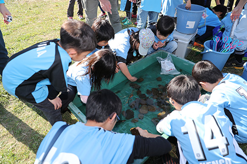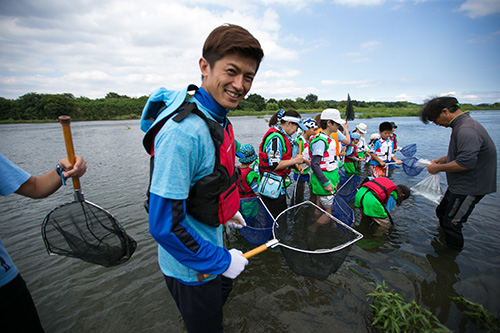 ※選手たちと一緒に清掃はどなたでも参加できますが、体験学習(①「ガサガサ体験」、②「ごみ分別体験学習」、③「多摩川水生生物観察」、④「草木染め体験」)は、事前の応募が必要です。