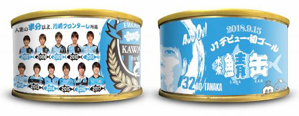 「人生の半分」以上がフロンターレ在籍の田中碧選手。そこで!!「半分青い」“鯖(魚へんに青)”缶を田中碧モデルで商品化。今回この鯖缶の企画には、年に2回実施しているホームゲームイベント陸前高田ランドに出店いただいている「陸前高田地域振興株式会社」様ご協力の元、実現いたしました。