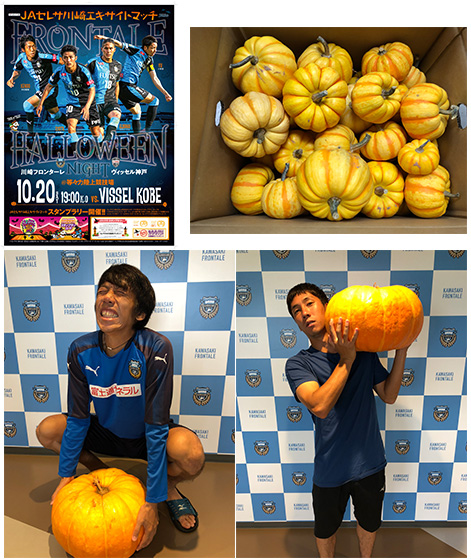 ※食用かぼちゃは100個ご用意しますが、なくなった場合は川崎フロンターレ選手トレカをプレゼントします。その際は、プレゼントはパンプキン測りブースでお渡しします。