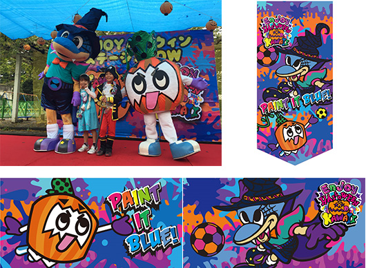 原宿KAWAII文化の第一人者で、アートディレクターの「増田セバスチャン」さんがデザインしたハロウィンビッグフラッグ&タペストリーが、昨年に引き続き試合会場や川崎の街中に出現します。また、試合当日はふろん太とカブレラもこのハロウィン衣装を着用しますよ!