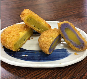 ○ハロウィンコロッケ(かぼちゃ、安納芋&紫芋):400円(税込)