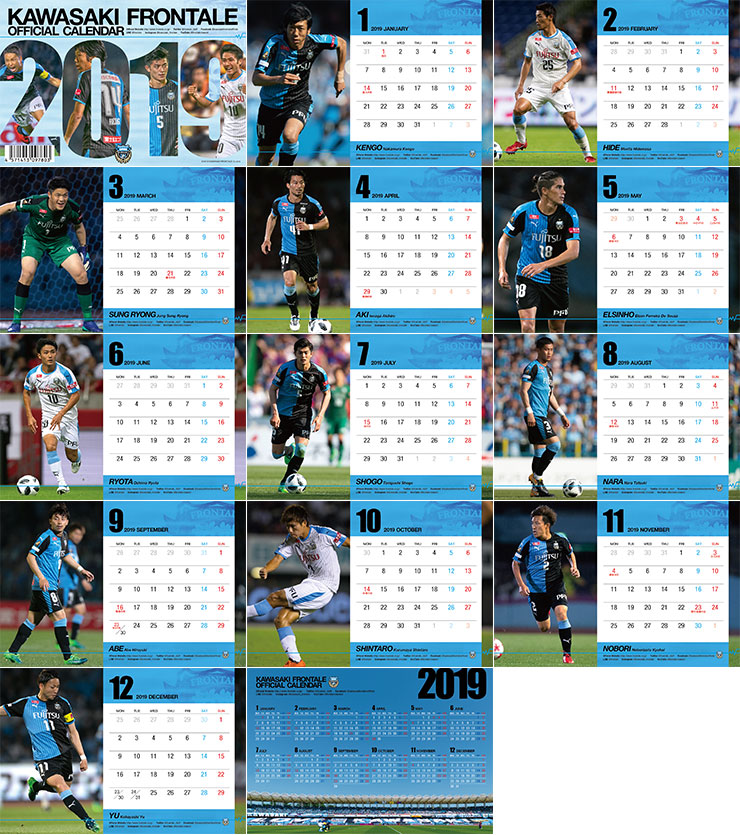 川崎フロンターレでは、11月3日(土・祝)柏レイソル戦より「2019オフィシャルカレンダー(壁掛けタイプ・卓上タイプ)」を一般販売しますので、お知らせいたします。