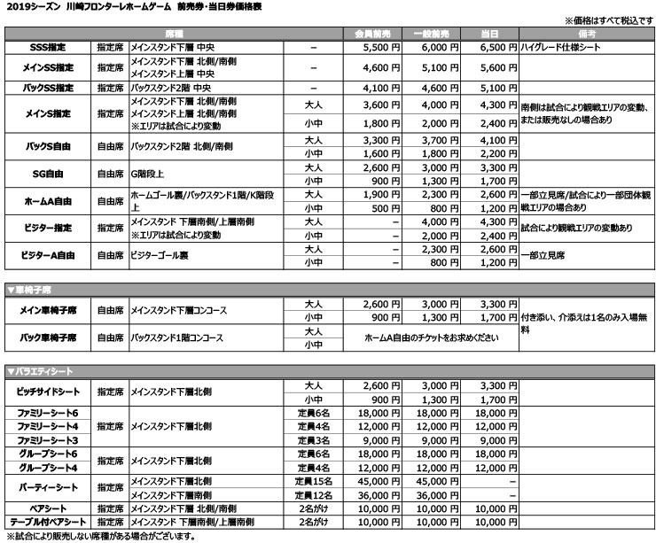 川崎フロンターレでは2019年シーズンの席割および入場料について、下記の通り決定いたしましたので、お知らせいたします。