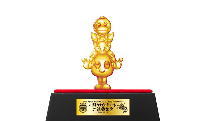 そして今シーズンは、更なるインパクトを与え、フロンターレサポーターがサポーターであることを誇れる逸品を創造したいとの強い気持ちから「純金カブレラ~ふろん太を添えて~」が誕生いたしました。