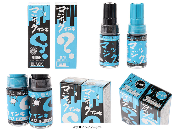 紙はもちろん、ガラス・プラスチック・布・皮・木材・金属・陶器など、どんなものにもよく書け、速乾性・耐水性に優れている魔法の筆記具「マジックインキ」として発売以来65年、現在も当時とほぼ変わらない形状で販売され皆に愛され続けている超ロングセラー商品です。