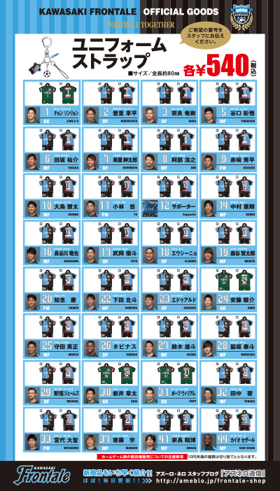 2018シーズングッズを特価価格でご提供。今までフロンターレグッズを身に着けてなかった方や、フロンターレサポーターになりたてのお友達へのプレゼントなどにぜひご利用ください。