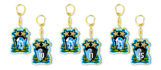 星を加えた2連の煮干し(2つ星)と優勝記念ロゴで3連のアクリルキーホルダーに。