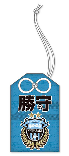 「新体制発表会見」当日の定番グッズ“勝守”。デザインは2019シーズンユニフォームをモチーフとし、フロンターレの勝利を願うだけでなく、受験シーズンのお守りに使う人もいる願掛けグッズ。