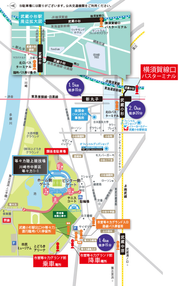 ※JR武蔵小杉駅北口からの直行臨時バス乗降場所とは異なりますので、ご注意ください!