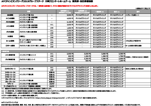 ※AFCチャンピオンズリーグ2019全席指定席化に伴い、「ホームA指定」、「バックS指定」となります。