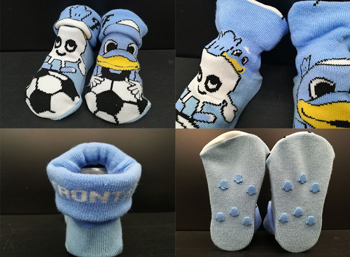 足裏にはカブレラの頭頂部の形をした滑り止め付き。新しい家族をフロンターレサポーターの一員にしましょう!