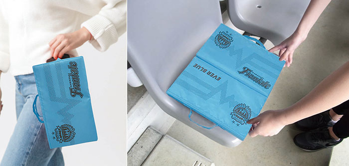 毎年定番グッズが2019シーズンverで登場。跳ね上がり式を採用するメインスタンドの座席には特にオススメな落下防止用のゴムバンド付き。また、寒い時期に冷たくなる座席対策にも!これで快適な試合観戦を。