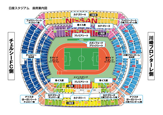●プレミアシート、カテゴリー1、カテゴリー2、カテゴリー3、ファミリーシート、ナツスタほーだいチケット、ゴール裏自由席は購入時に川崎F側/チェルシー側の指定ができます。