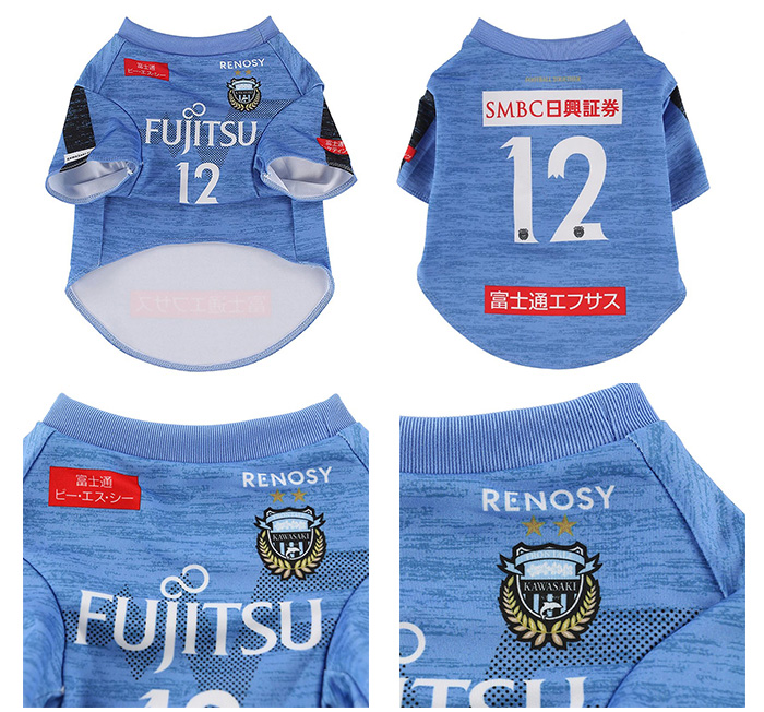 選手のネーム・ナンバーが入れられるドッグウェアは初!愛犬にお気に入り選手のネーム・ナンバーが入ったウェアを着せこみ、フロンターレファミリーの一員に!