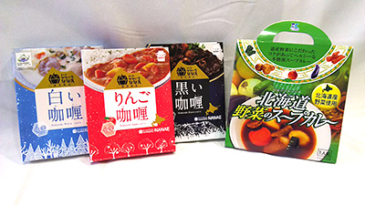◆3等:道の駅なないろ・ななえ 限定りんごカレー・白いカレー・黒いカレー・北海道野菜のスープカレー詰め合わせ(10名様)