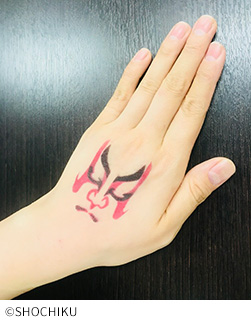 | 企画⑤ | ◆気軽にワンポイント隈取!歌舞伎ボディペイント体験 歌舞伎と言えば隈取!隈取りには様々な種類が存在します。赤や青の隈取が存在するのですが、一般的には、赤い隈取が正義の味方で青い隈取が悪役と言われています。今回は、赤い隈取のうち「一本隈」の隈取を実際の舞台でも使用されている三善様の化粧品を使用して、ボディペイントで体験していただきます!