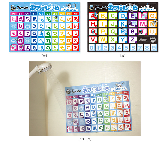家族にとって大事な時間。それがおフロ(風呂)の時間。小さなフロンターレサポーターがより楽しく過ごせるようにとの願いを込めて製作。ご自宅のおフロ(風呂)でひらがなとアルファベットを楽しく勉強しましょう!! 水の力を利用しているので「貼り付け」、「取り外し」が繰り返し可能。