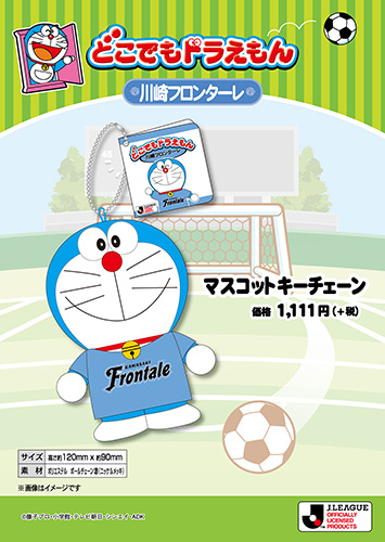 川崎市市制95周年ということで川崎市が誇るキャラクター。ドラえもんがフロンターレデザインTシャツを着用したキーホルダーを発売。
