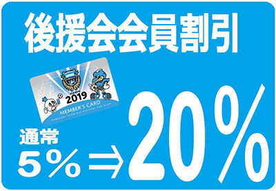 通常の場合、後援会会員割引は5%OFFとなりますが、この期間だけは20%OFF!!まだ会員に入っていない方でも15%OFFで販売いたします。この機会にぜひ後援会会員にご入会くださいませ。