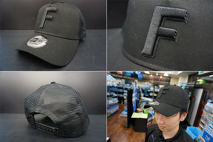 サイズ調整が可能なアジャスタブルタイプのメッシュキャップ。フロントロゴには「F」マークをブラックカラーのスタンプワークで力強く表現し、普段使いにもできるカラーリングになっています。
