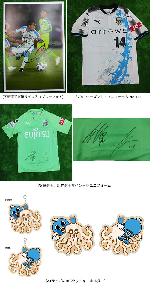 1回1,000円でハズレなしのフロンターレグッズくじ。下田選手のプレーフォトに加え、当日の新商品「たこせん風ウッドキーホルダー」のBIG版をフロンターレット限定で景品にしちゃいました。