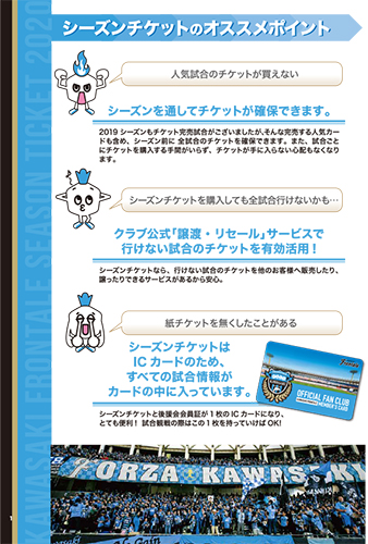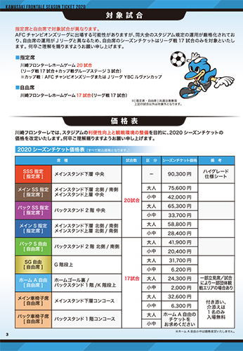 川崎フロンターレでは、2020年川崎フロンターレファンクラブ会員限定で販売を行う、「2020シーズンチケット」について、お知らせいたします。2020シーズンから、ファンクラブ会員証とシーズンチケットが1枚のICカードになります。また、2020シーズンファンクラブ・シーズンチケットについてご不明点がある場合は、下記の[お問い合せ先]にお問い合せください。