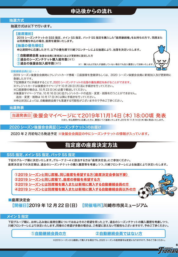 10月10日(木)から、2020シーズンファンクラブ入会・シーズンチケットに関する申込窓口を開設いたします。