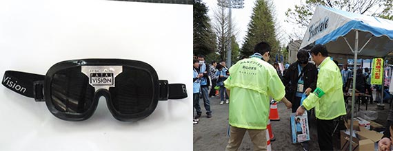 お酒を飲んだあとは交通安全により注意が必要。特殊なゴーグルを着用してお酒を飲んだ状態を疑似体験してみよう!普段できることができなくなります!