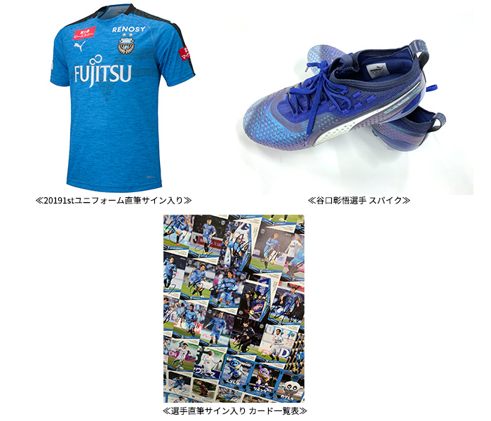 | 賞品例 | ◇選手直筆サイン入りユニフォーム各種&谷口彰悟選手 スパイク その他豪華な選手直筆サイン入りグッズなどご用意予定です!! ※賞品のお渡しは抽選またはランダムでのお渡しとなるものもございます。あらかじめご了承ください。 |
