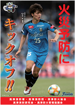 この度、高津消防署が製作する防火ポスターに当クラブの田中碧選手が採用されましたのでお知らせいたします。