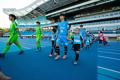 川崎フロンターレU-18の選手たちと手をつないで入場(最大22名)します。