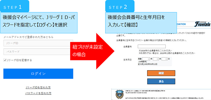 STEP5:STEP2で取得した(注)JリーグIDで後援会マイページ