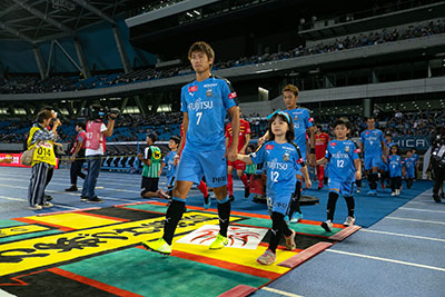川崎フロンターレの公式戦(ホームゲーム)の際、両チーム選手と手をつないで入場(最大22名)、フラッグを持ちピッチに入場(最大14名)します。
