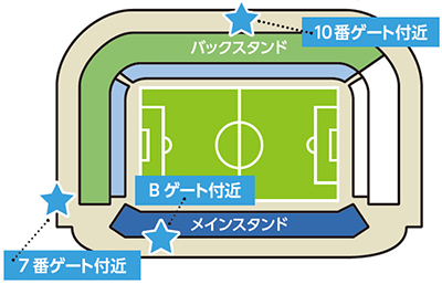 | ポイント加算場所 | ◇Bゲート付近、7番ゲート付近、10番ゲート付近(I階段下) 16:30~試合終了後30分 ※場外に端末の設置はございません。
