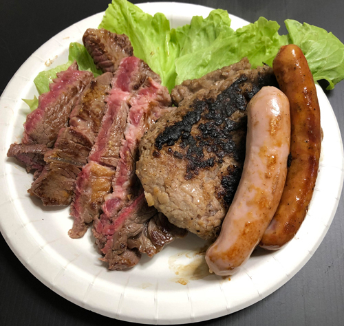 (ビーフステーキ120g、ビーフハンバーグ180g、ソーセージ80g) |